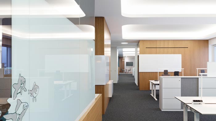 軟件公司辦公室辦公區(qū)設(shè)計(jì):設(shè)計(jì)師在設(shè)計(jì)的時(shí)候,在采用開放式辦公的同時(shí),以儲(chǔ)存柜代替隔斷將每一個(gè)辦公工位進(jìn)行隔離,這樣的設(shè)計(jì)可以有效的彌補(bǔ)開放式的缺點(diǎn),同時(shí)讓空間看起來更加有層次感,儲(chǔ)藏柜的設(shè)置也很好的解決了空間容納的缺憾,真是一舉兩得。