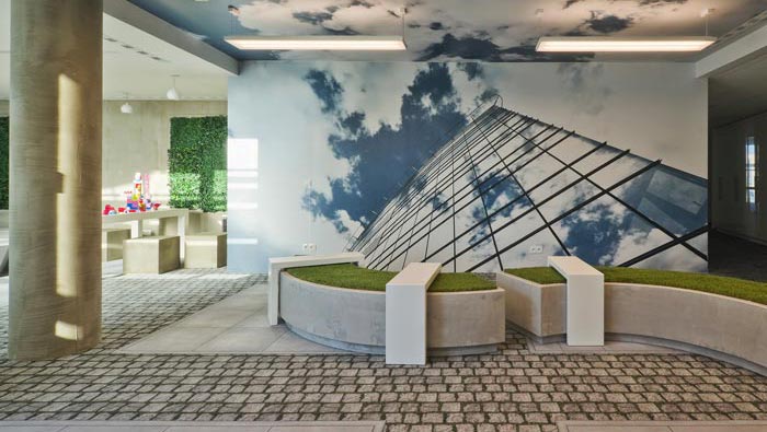 網(wǎng)絡(luò)公司辦公室過(guò)道設(shè)計(jì):設(shè)計(jì)師在設(shè)計(jì)的時(shí)候,首先要做的就是與進(jìn)門(mén)區(qū)域保持一致,為了與進(jìn)門(mén)區(qū)域保持一致,石磚的鋪墊不僅延續(xù)了進(jìn)門(mén)區(qū)域的設(shè)計(jì),也同樣與外部保持一致,這也是設(shè)計(jì)師希望的效果,不讓內(nèi)外產(chǎn)生過(guò)大的變化。