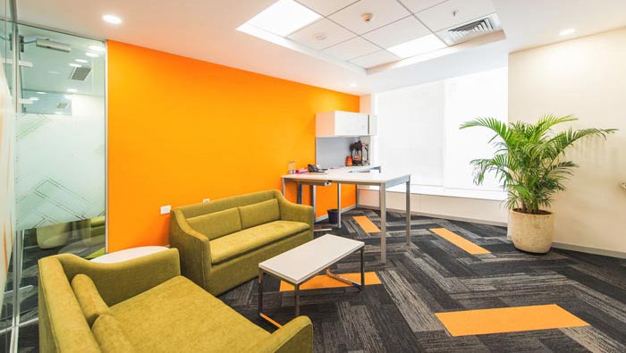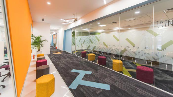 游戲公司辦公室過道設(shè)計(jì):設(shè)計(jì)師在設(shè)計(jì)的時(shí)候,為了避免過道過于單調(diào),故此在設(shè)計(jì)中特意留下一片空白區(qū)域,將此空白區(qū)域打造成一個(gè)休息區(qū)域,小軟椅擺放在此處,不僅體現(xiàn)了企業(yè)在細(xì)節(jié)上的服務(wù),同時(shí)小軟椅的色彩與整個(gè)空間遙相呼應(yīng),有量變與質(zhì)變的關(guān)系。