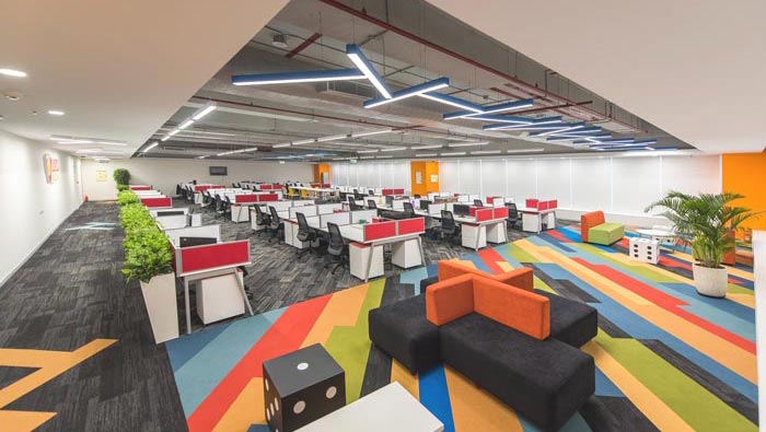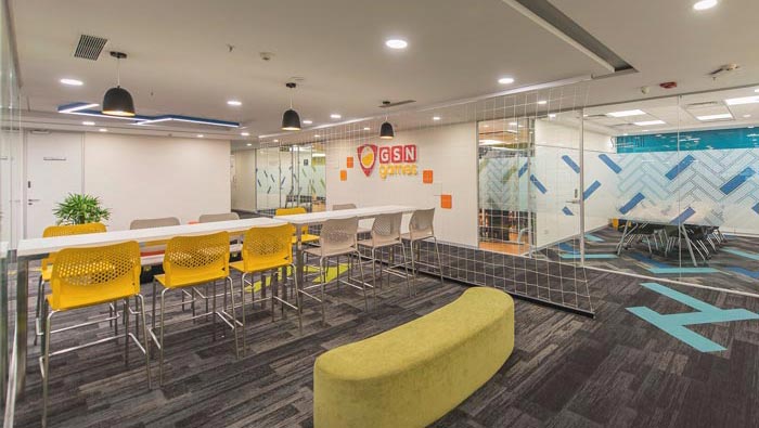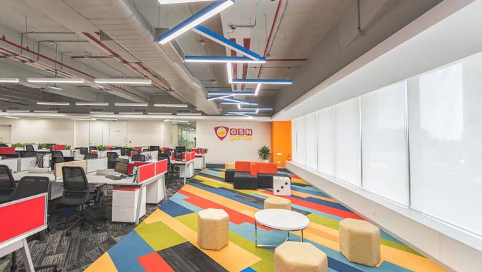 游戲公司辦公室辦公區(qū)設(shè)計(jì):設(shè)計(jì)師在設(shè)計(jì)的時(shí)候,將其安置在一個(gè)開放式的空間之中,在設(shè)計(jì)師看來開放式雖然有缺點(diǎn),但也是現(xiàn)在、未來的主流設(shè)計(jì)方向,因?yàn)檫@樣的設(shè)計(jì)可以在很大程度上釋放員工的創(chuàng)意,讓員工在這樣的空間中可以無憂無慮,不會(huì)受到來自空間的壓力。