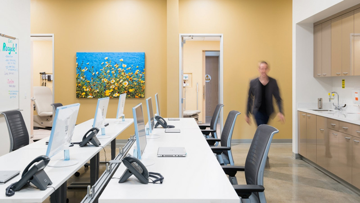 本次為健康療養(yǎng)中心辦公室裝修設(shè)計(jì)項(xiàng)目,設(shè)計(jì)面積在650平方左右,此處是位于加利福尼亞州山景城的新的健康設(shè)施,設(shè)計(jì)師在設(shè)計(jì)的時候,重點(diǎn)在于考慮如何設(shè)計(jì)出一種,符合下一代新型醫(yī)療所配套的辦公設(shè)計(jì),這也是設(shè)計(jì)師此處設(shè)計(jì)師首要要面對的事情,旨在激發(fā)新一代努力工作,更好地生活。