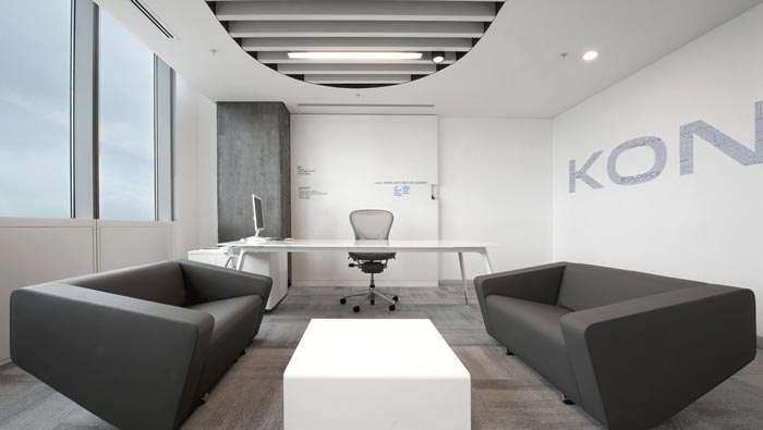 總經(jīng)理辦公室的設(shè)計:此處僅有20平方,但是在設(shè)計師的設(shè)計手法之下,一切都變的不同,白色讓整個空間在視覺上向外延伸,家具的擺放既簡單又實用,兼顧了辦公與接待,在設(shè)計師的眼中,設(shè)計師本身就是化繁為簡的一個過程,設(shè)計師要做的就是將其簡化到極致。