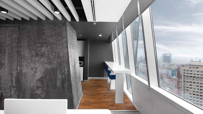 茶水間的設(shè)計:此處位于窗邊的空間,設(shè)計師這樣設(shè)計的目的,就是希望將此處的優(yōu)點完美的發(fā)揮出來,吧臺位于窗邊,在這里可以眺望整個城市,設(shè)計師希望員工在這里可以放飛自己,在這里可以暫時的忘記一切,在自然的景觀中,讓自己得以歸零并重新開始。