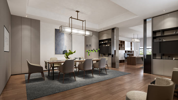 醫(yī)藥辦公室會(huì)議室設(shè)計(jì):每個(gè)空間都有主次,在這里設(shè)計(jì)師讓主次更加的分明,主區(qū)做為會(huì)議室的主題區(qū)域,副區(qū)做為整個(gè)空間的輔助區(qū)域,兩者之間相輔相成,為需求的滿足提供了合力。
