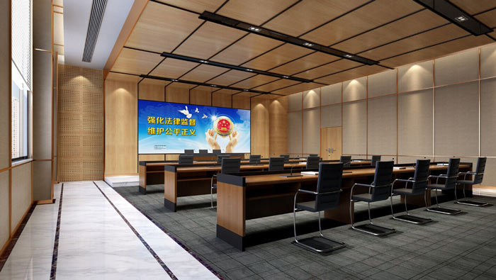 政府機(jī)關(guān)辦公樓新媒體中心裝修:新媒體空間的功能要求,有別于普通的會(huì)議室,故此設(shè)計(jì)師根據(jù)空間的實(shí)際功能需求,打造專業(yè)化的新媒體空間。
