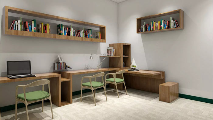 國(guó)家電網(wǎng)辦公室休息區(qū)裝修:空間有書、有花、有綠植、有座椅、有景色,小空間在設(shè)計(jì)師的手法之下,化腐朽為神奇,設(shè)計(jì)師希望將所有空間都合理的加以運(yùn)用。