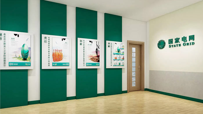 國(guó)家電網(wǎng)辦公室形象墻裝修:科技創(chuàng)新、超越自我是企業(yè)一直堅(jiān)持的理念,電網(wǎng)無處不在,表示著企業(yè)的宏偉藍(lán)圖,電網(wǎng)上的工作人員,表示著企業(yè)的腳踏實(shí)地。