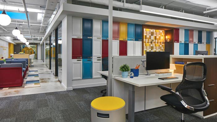 獨立辦公區(qū)域的設計:這樣的辦公區(qū)域主要是為哪些解決專家提供的,因為在設計師看來任何事都不是輕易可以解決的,需要的是我們靜下心來,但靜心往往是最難的,這也是設計師設計休息區(qū)在辦公區(qū)附近的原因,靜思在加上分析如虎添翼,在設計上為解決專家提供裨益。