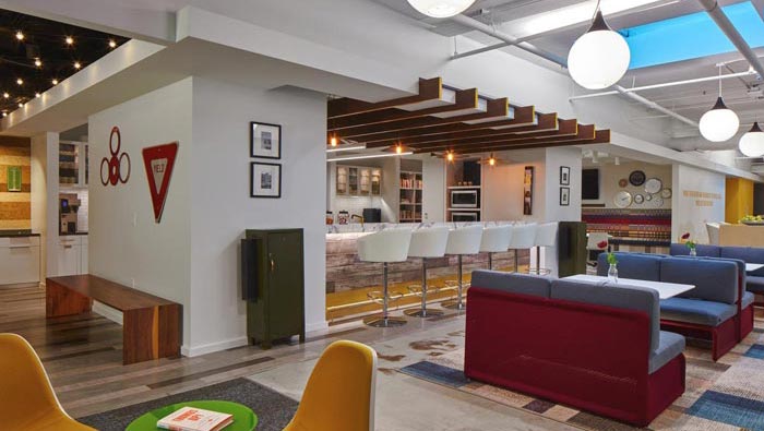 茶水間的設計:仔細看去會發(fā)現(xiàn)茶水間給人的感覺就像是家庭中的廚房一般,這也是設計師的愿望,因為對于中國人來說家庭是重要的組成部分,其中家庭也會讓員工在勞累的時候微微一笑,瞬間勞累的身心仿佛得到了一次凈化,設計師就是希望讓員工可以把企業(yè)當做是一個大家庭一樣,努力、付出相互依偎、相互成長。
