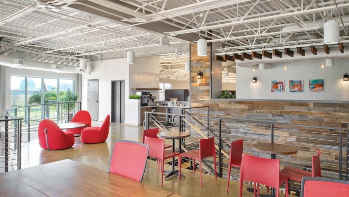 700平方辦公室休息區(qū)設(shè)計(jì):一樓客戶感受到企業(yè)的實(shí)力與誠意,當(dāng)一步一步走上二樓之后,感受到的是另外一番場景,在這里陽光投射在空間之中,一股暖洋洋的感覺撲面而來,這是設(shè)計(jì)師對于光的理解,因?yàn)橛辛斯馊f物有了色彩,故此設(shè)計(jì)師希望讓客戶直觀的感受到光的魅力。