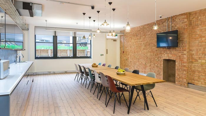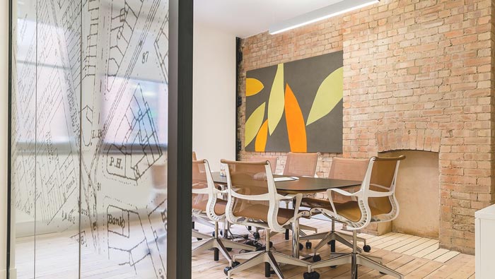 900平方辦公室會議室設計:此處給人的第一感覺就是紅磚墻,這樣的磚墻現(xiàn)在已經(jīng)不多見了,但是對于大部分人來說這是我們那一代代的記憶,在無形中拉近了彼此的關系,給人一種回歸自然、返樸歸真的感覺,同時也與整個空間相契合。