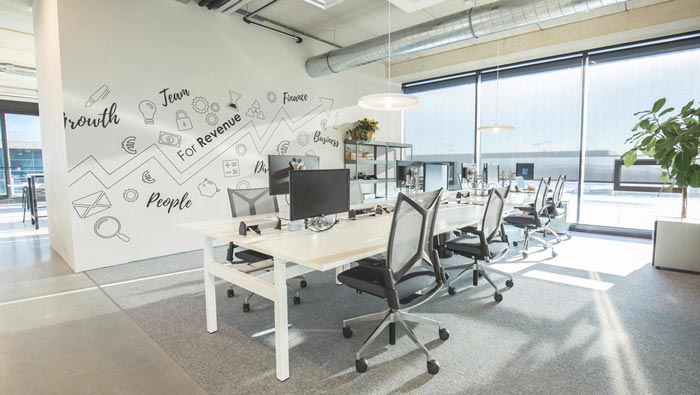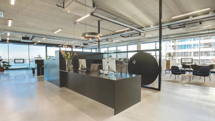 辦公室辦公區(qū)裝修:進(jìn)入此處后開放式的空間引入眼簾,給人的第一感覺就是我若在此地辦公該有多好,保證員工的創(chuàng)新能力也十分必要,所以人性化的辦公空間也就勢在必行。