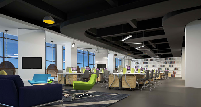 辦公區(qū)域的設(shè)計(jì),設(shè)計(jì)師采用開(kāi)放式的設(shè)計(jì)手法進(jìn)行設(shè)計(jì),讓員工脫離緊促的辦公環(huán)境,營(yíng)造一個(gè)更易于合作、創(chuàng)新和社交的環(huán)境,不同部門(mén)和團(tuán)隊(duì)之間可以更容易地交換觀點(diǎn)。