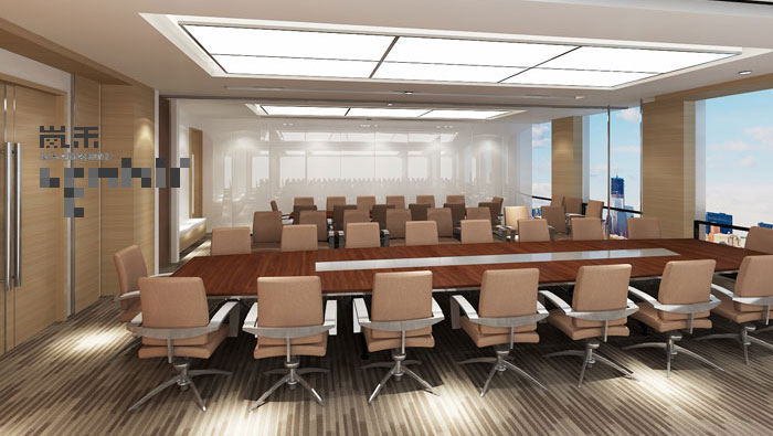 會議室的設計,窗戶的布置與設計給空間帶來了大氣,軟裝的設計給空間帶來了溫馨,此空間主要表達了大氣中的溫馨。