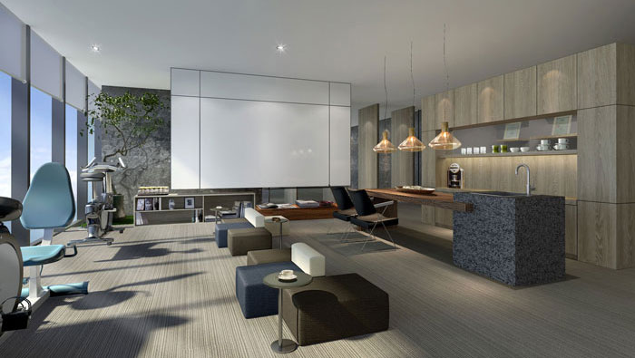 茶水間的設(shè)計(jì),設(shè)計(jì)師在其設(shè)計(jì)的時(shí)候,對空間一分為三,一則休息、二則茶水間、三則活動區(qū)域,讓員工在此處可以釋放壓力,以更好的投入工作。