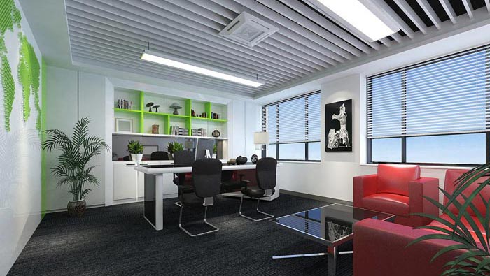 總經(jīng)理辦公室的設(shè)計(jì),白色空間中點(diǎn)綴著絲絲綠意,綠色是大自然中最常見的顏色,明快的色調(diào)流露出生機(jī)盎然的感覺。
