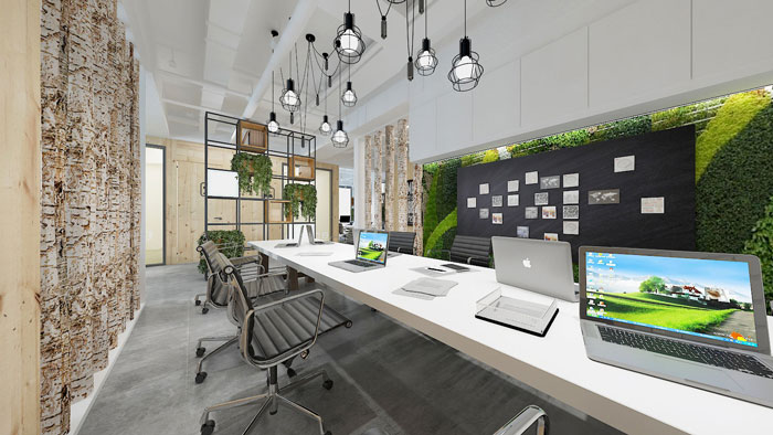 辦公區(qū)域的設(shè)計(jì),其開(kāi)放式的辦工桌設(shè)計(jì),是此處的一大亮點(diǎn),拆除了員工與員工之間的壁壘,為大家之間的交流提供了便利。