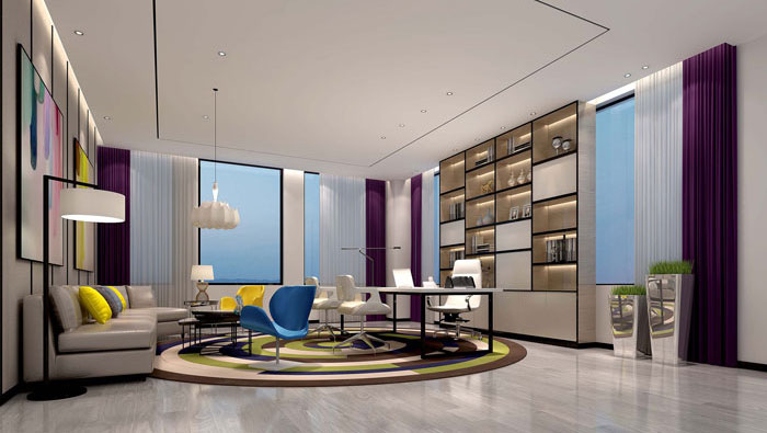 總經(jīng)理辦公室的設(shè)計,設(shè)計師利用色彩的漸變?yōu)橹饕c,在同時以軟裝、硬裝的分合設(shè)計,將空間合的理念進一步擴大。