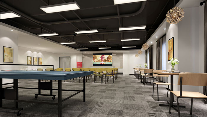 休息區(qū)域、娛樂區(qū)域的設(shè)計(jì),設(shè)計(jì)師以線條感、層次感為基點(diǎn),在空間中采用了抽象畫與軟裝的各種搭配,期望打造現(xiàn)代化的辦公環(huán)境。