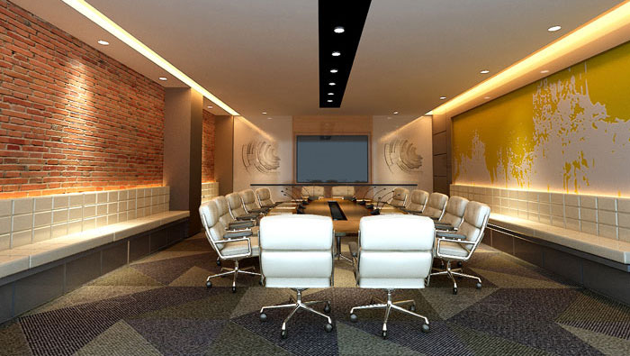會議室的設(shè)計,設(shè)計師采用暖色系進行設(shè)計,這樣的空間設(shè)計給人以溫暖、柔和的空間感受。