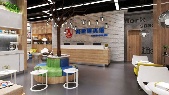 前臺(tái)的設(shè)計(jì),設(shè)計(jì)師重點(diǎn)在于培養(yǎng)空間和睦溫馨的氛圍,從孩子的眼光看世界,幫助孩子在毫無(wú)壓力與困惑的環(huán)境下,開(kāi)心快樂(lè)的度過(guò)學(xué)習(xí)生涯。