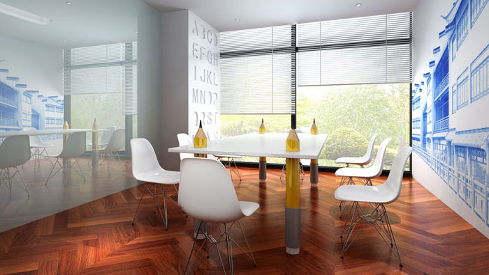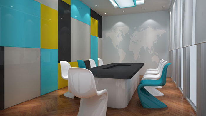 會(huì)議室的設(shè)計(jì),設(shè)計(jì)師在設(shè)計(jì)的時(shí)候,以色彩鋪墊整個(gè)空間,以地圖對(duì)空間進(jìn)行點(diǎn)綴,一則創(chuàng)意無限,二則說明思維的重要性。