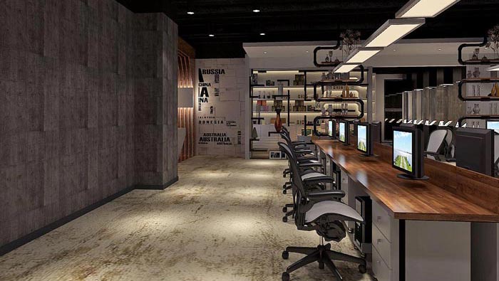 2600平方科技辦公區(qū)域:設計師在設計的時候,考慮到企業(yè)對于辦公工位的要求較多,故此設計師在設計的時候,不得不為辦公空間的設計讓路,最后設計師以一字長蛇般的穿越整個空間,同時保證各個工位之間的排列合理,以此在滿足企業(yè)需求的同時,還可以保證空間的完整和其他空間的連接的順暢。