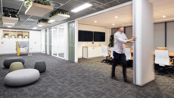 辦公會(huì)議室裝修效果圖:自然、簡(jiǎn)潔是空間的設(shè)計(jì)主題,推拉門(mén)的設(shè)計(jì)為空間釋放了更多的區(qū)域,推拉門(mén)關(guān)閉時(shí)可以作為隔墻使用,開(kāi)放式封閉的空間與外部空間合為一體。
