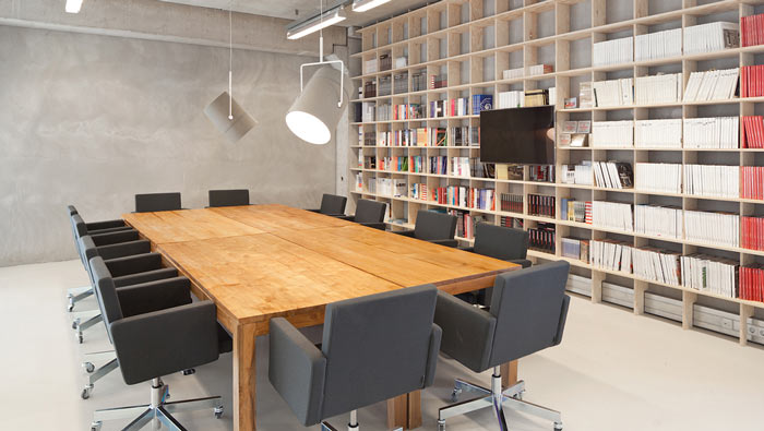 辦公會(huì)議室裝修效果圖:會(huì)議室、閱讀室是此處空間的兩大屬性,這是設(shè)計(jì)師希望將空間的使用達(dá)到最大化,閱讀讓人成長(zhǎng),會(huì)議室實(shí)踐解決問(wèn)題,兩者之間和諧共處。