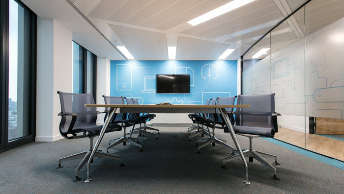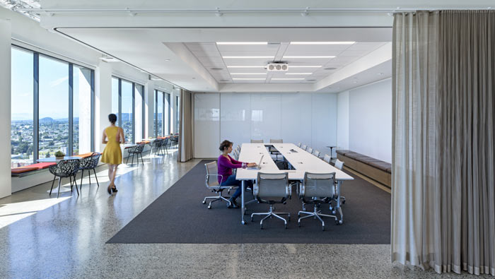 會議室裝修設(shè)計效果圖:開放式的設(shè)計是空間的一大特色,會議室與整個空間完全融為一體,讓思想沒有了界限,這也更利于員工的構(gòu)思與創(chuàng)新。