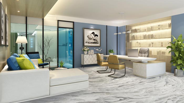 本次老總辦公室裝修設計效果圖講解到此結束,在本次設計中,設計師重要要追求的就是空間與總裁本人之間的結合,只有真正的了解總裁的性格與愛好,才能打造出相互融合的空間,這樣的效果絕不是1+1那么簡單。