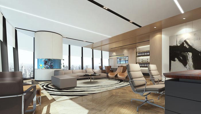 老總辦公室設計:此處結合了接待區(qū)域、休息區(qū)域、吧臺區(qū)域、辦公區(qū)域,意在滿足總裁本人對空間的需求,每一個人對空間的追求是不同的,有的追求舒適、有的追求便捷、有的追求陽光不一而足,此處總裁本人追求的是便捷、方便與全面。